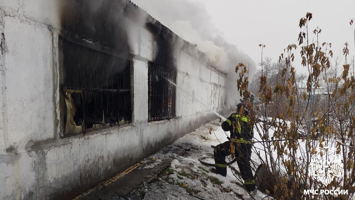 На момент прибытия первого подразделения шёл дым из-под крыши и из окон здания.