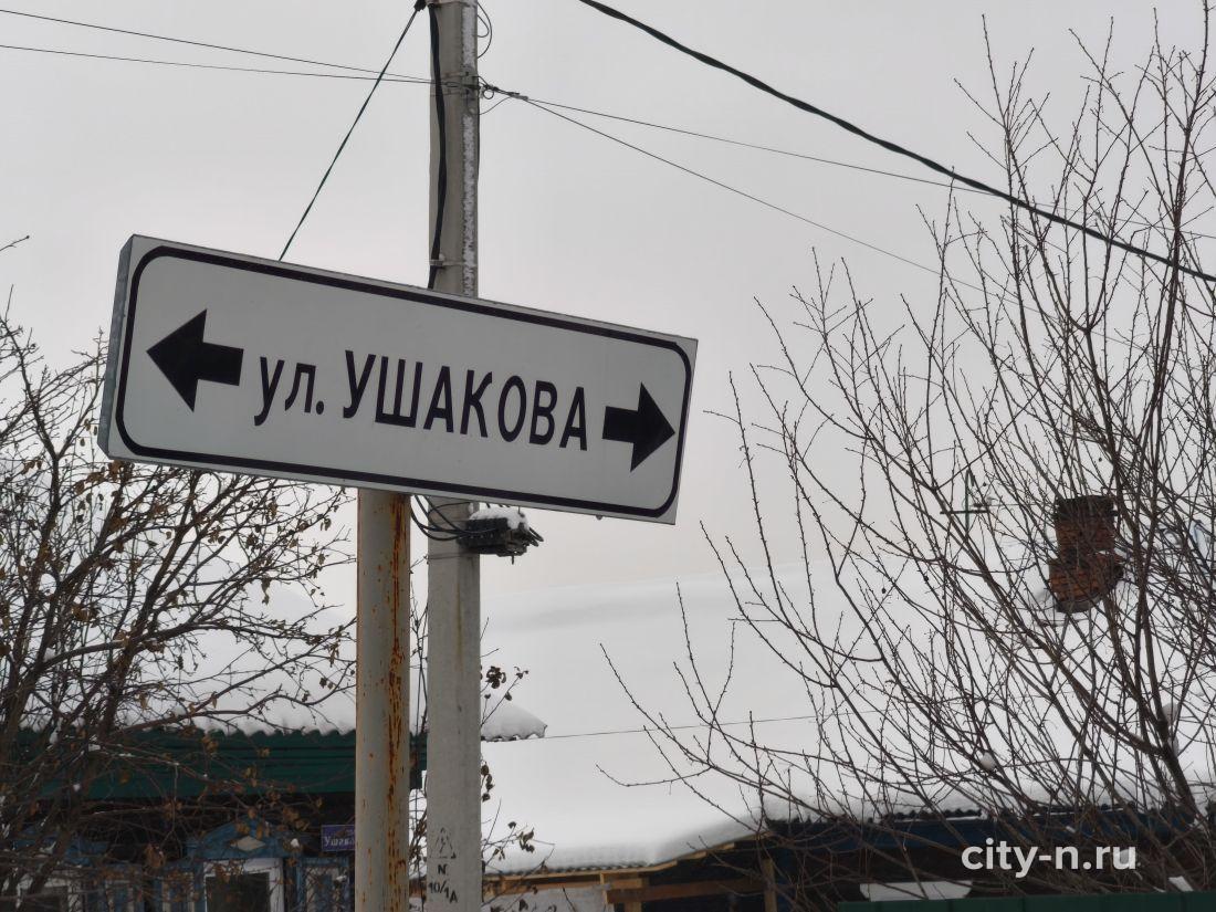 «Посёлок расстраивается. К середине 50-х годов ближе к окраине — к горе, появляются улицы частных одноэтажных домов. Одна из этих улиц получает название имени Ушакова. Причём, названа она была не в связи с какими-то примечательными событиями или памятной датой, нет. Фёдор Фёдорович Ушаков — выдающийся русский адмирал, и его можно сравнить только, пожалуй, с Суворовым. Только эти выдающиеся люди сопоставимы. Но если Суворов — великий полководец на суше, то Ушаков — на море. Фёдор Фёдорович навсегда остаётся в истории непревзойдённым адмиралом, он одержал пять крупных побед и не потерял ни одного корабля во время морских баталий».