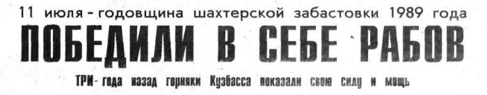Годовщина забастовок (газета «Шахтёрская правда» за 11 июля 1992 г.)