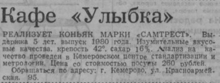Коньяк «Самтрест» (газета «Кузбасс» за 9 июля 1992 г.)