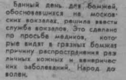 Банный день для бомжей (газета «Кузбасс» за 10 июля 1992 г.)