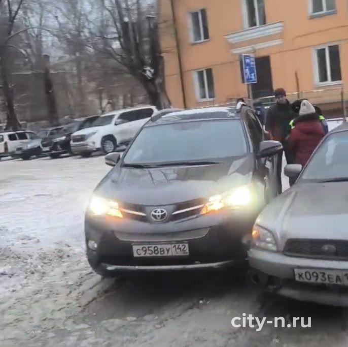 «Судя по положению столкнувшихся машин, водитель кроссовера, выезжавший из двора, не уступил дорогу седану», - сообщает автор видео Егор.