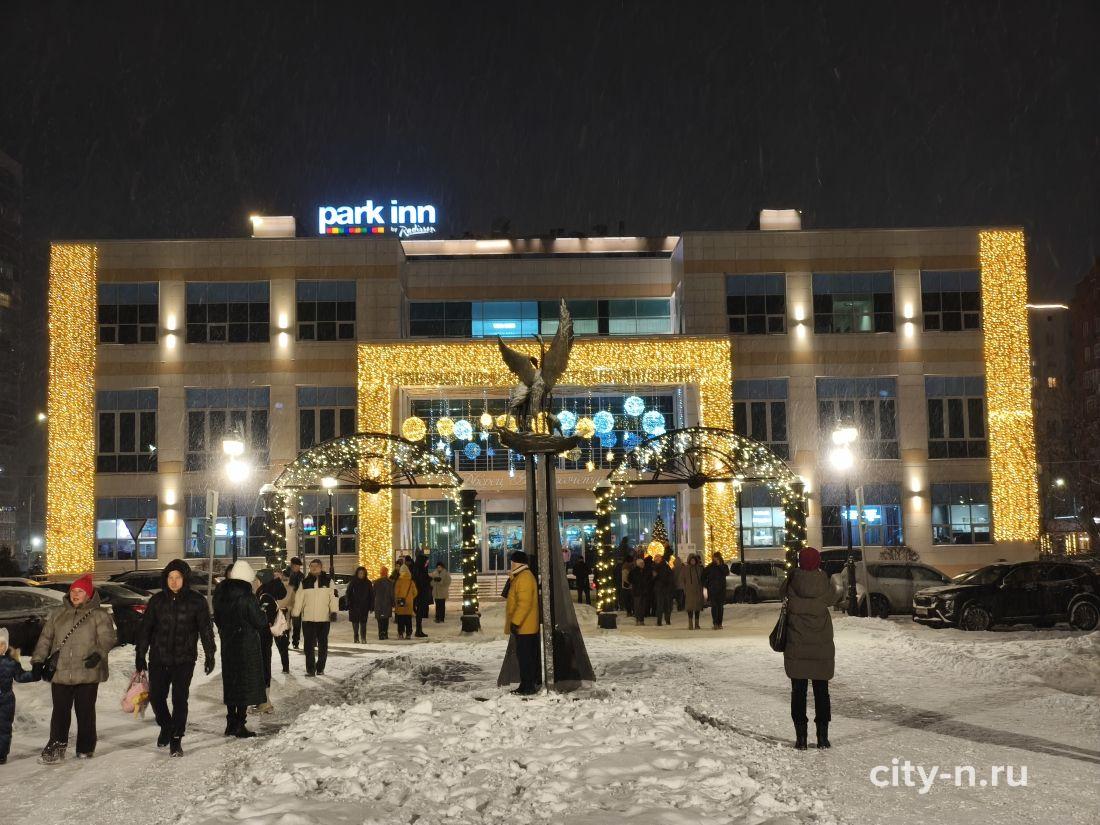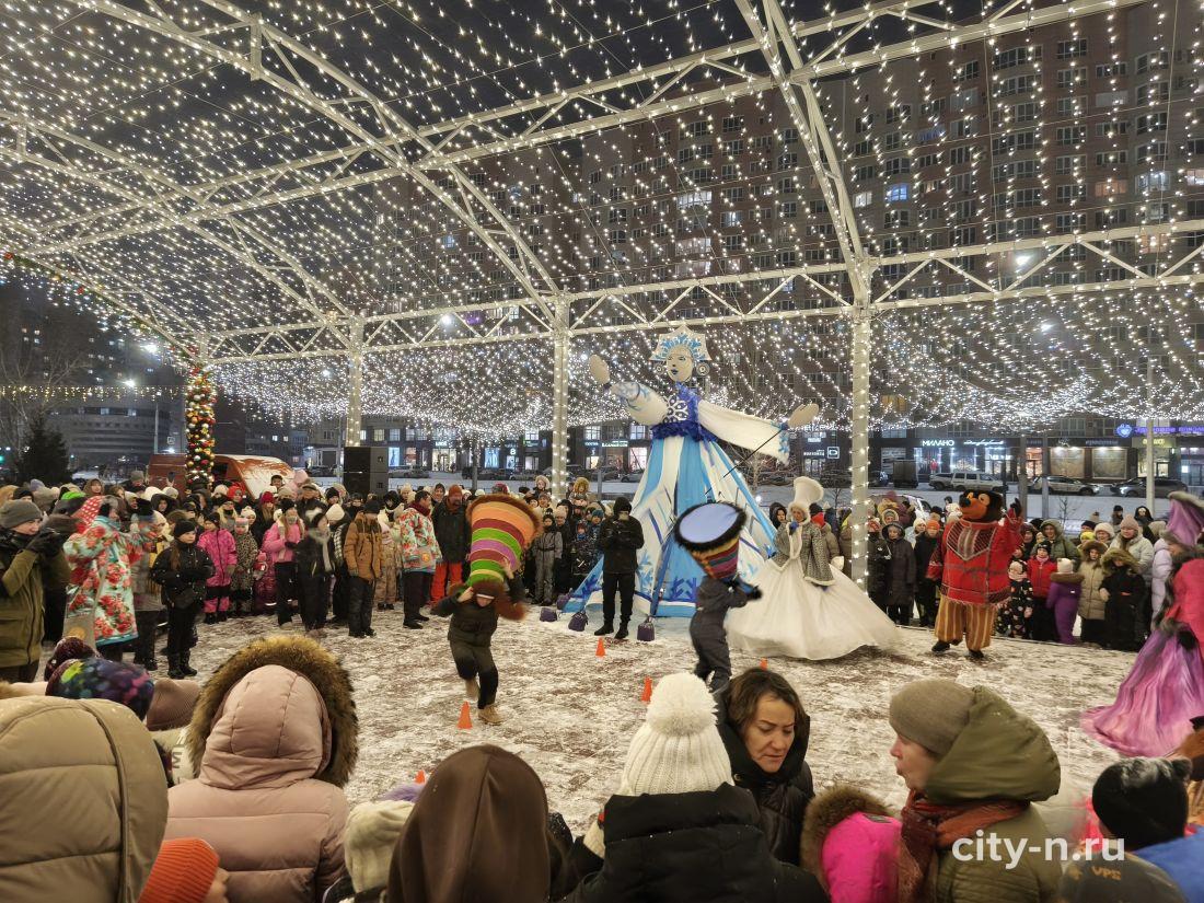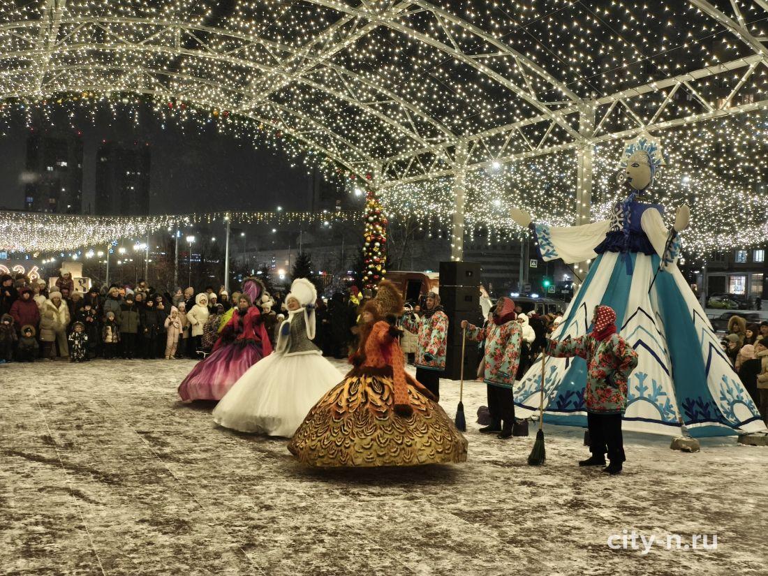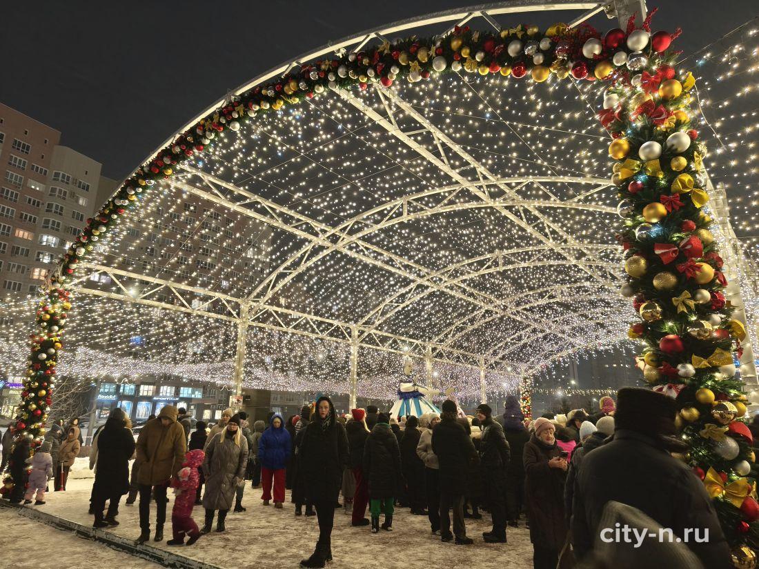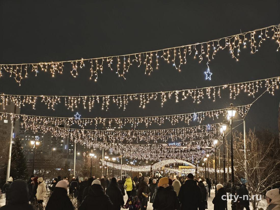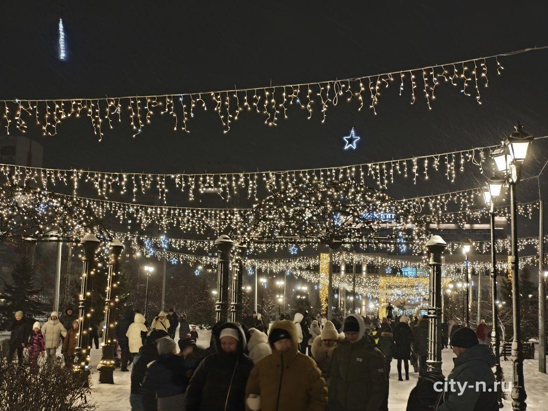 Над площадью торжественно повесили купол из лампочек, шарики и мишуру. То, что в других странах называют словом декабрь.