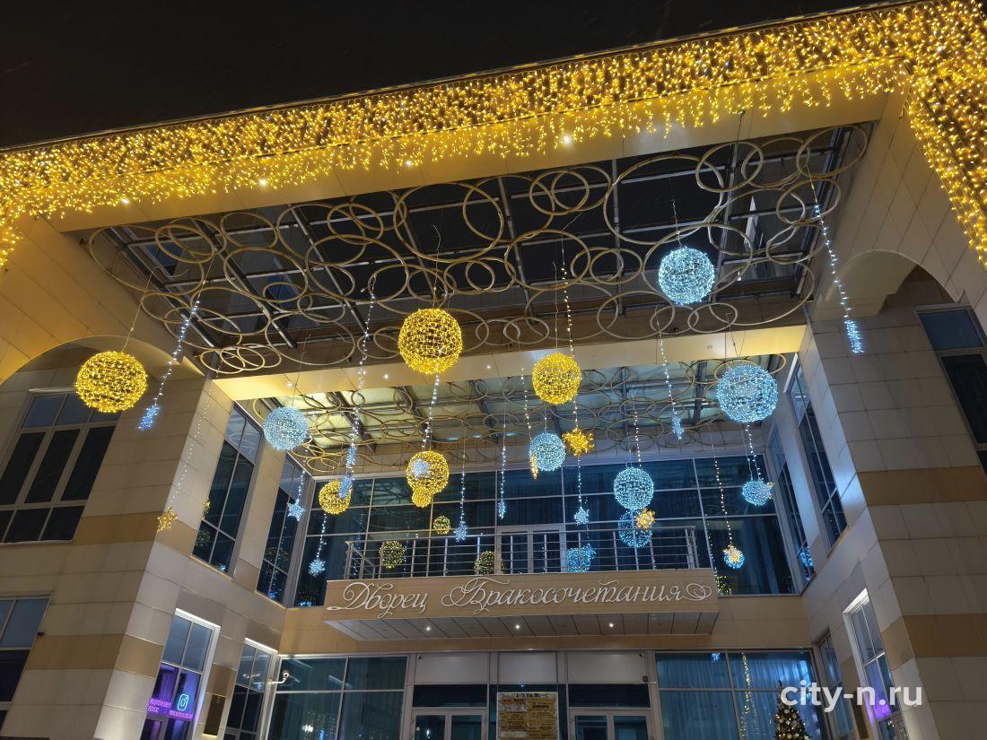 Подчеркнули яркими огнями архитектурные элементы ЗАГСа. Всё для того, чтобы новокузнечане почувствовали предвкушение настоящего чуда нового года.