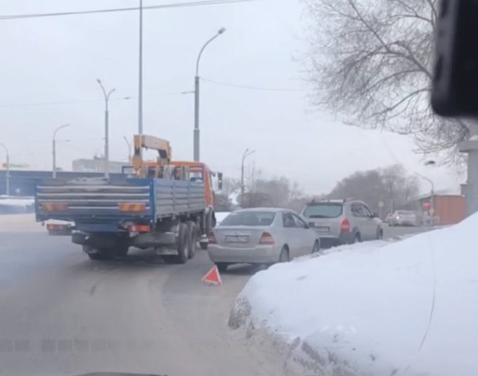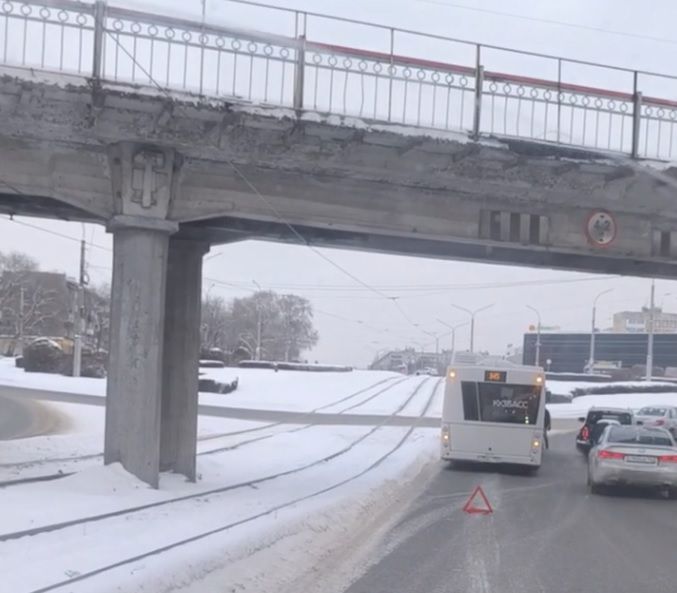 Дорожно-транспортное происшествие с участием двух транспортных средств произошло под железнодорожным виадуком на въезде в Кузнецкий район в первом часу дня.
