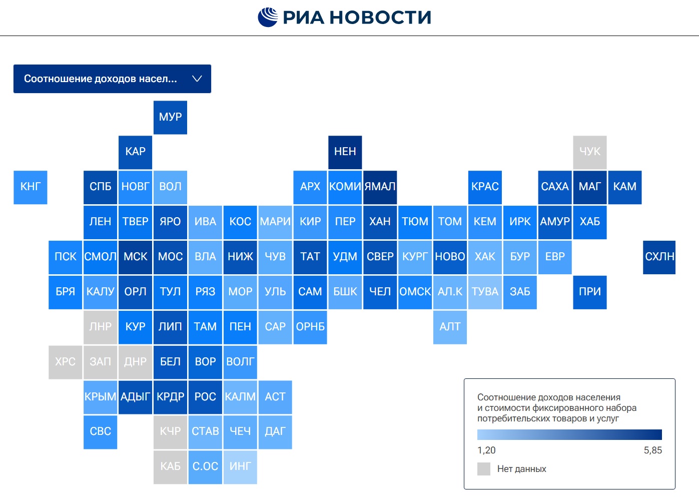 Регионы Крайнего севера — Ненецкий и Ямало-Ненецкий, а также Чукотский автономные округа — возглавили рейтинг российских регионов по уровню доходов населения, последние строчки занимают Ингушетия, Тува и Карачаево-Черкесия, свидетельствует исследование РИА Новости.