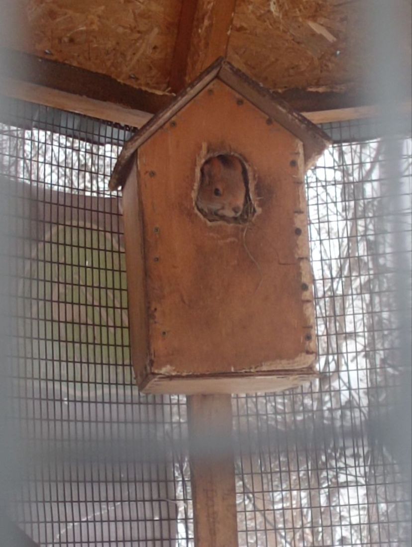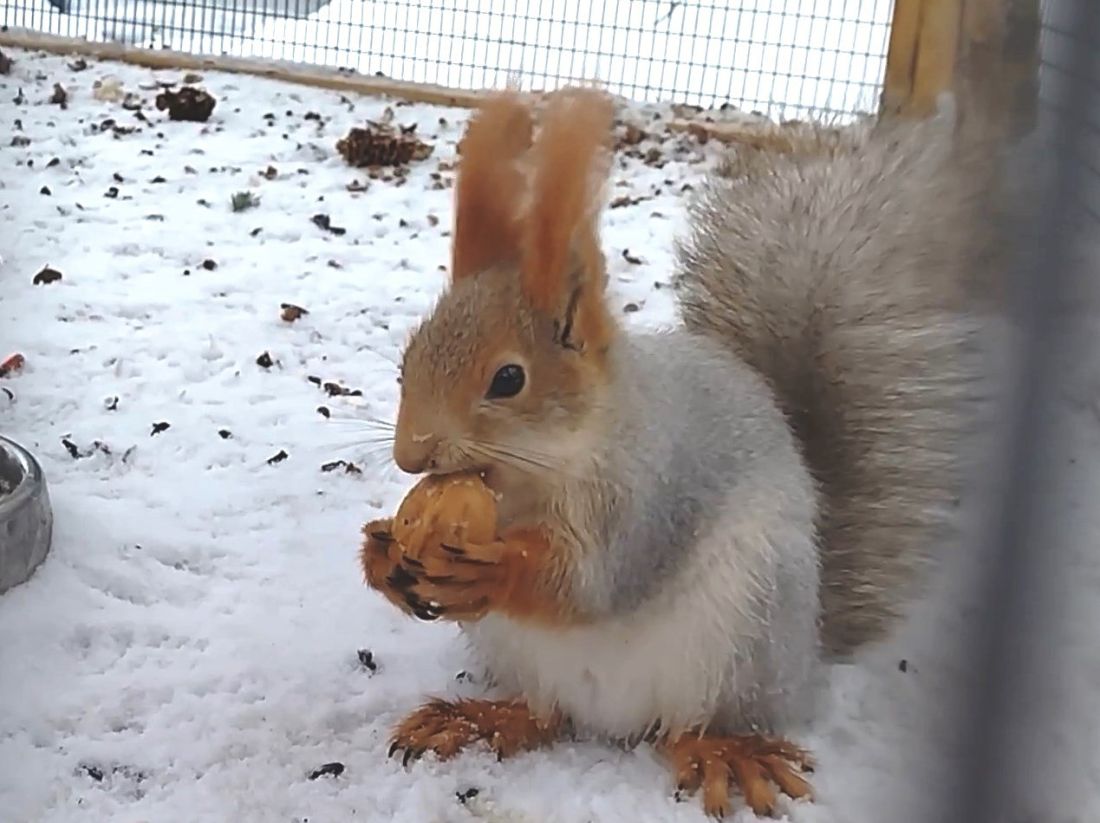 В этом году у пары родилось трое бельчат. Теперь это многодетная беличья семья. Юные посетители экоцентра очень любят этих активных зверьков и подолгу задерживаются у их вольера. В сентябре шерсть у них с рыжей меняется на более густую и пушистую и приобретает серый окрас. Именно эти «шубки» и спасают белок зимой от холода. В дикой природе эти зверьки строят свои «дома» только на деревьях. В качестве убежищ используют как дупла, так и гайна (шарообразное гнездо), там они ночуют, укрываются от непогоды, жары и хищников, а также выводят потомство.