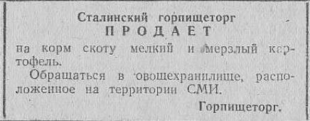 Картофель (Газета «Большевистская сталь» за 5 декабря 1952 г.)