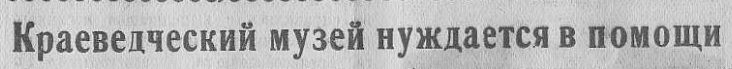 Краеведческий музей (Газета «Большевистская сталь» за 2 декабря 1952 г.)