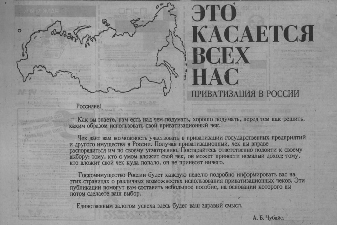 Обращение Чубайса к россиянам (газета «Кузбасс» за 13 ноября 1992 г.)