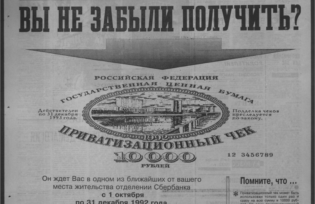 Вы не забыли получить ваучер (газета «Кузбасс» за 11 ноября 1992 г.)