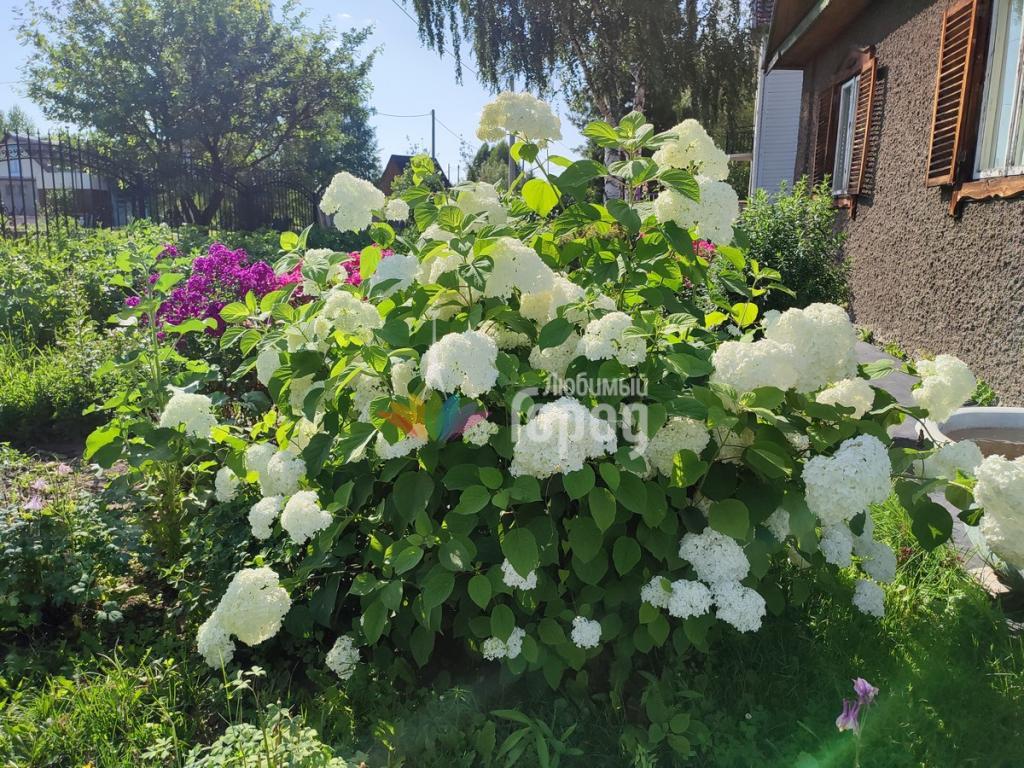 Садовые насаждения: малина, яблоня, виктория, курильский чай, крыжовник, смородина и много цветов.