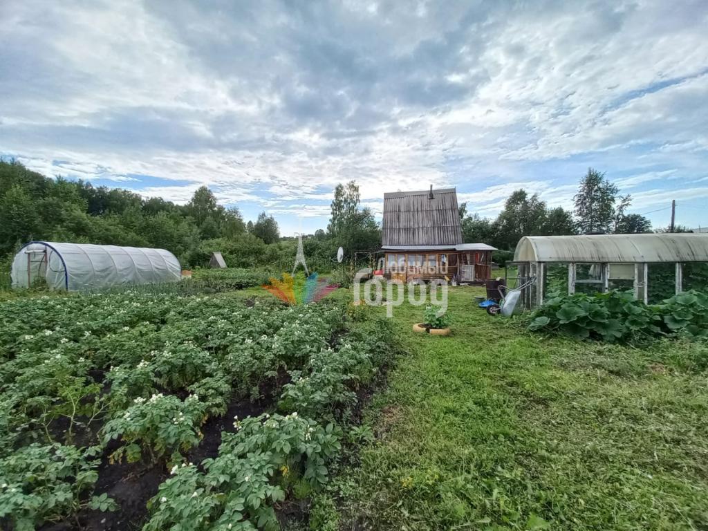Участок ровный, на участке есть теплица, душ, различные посадки.