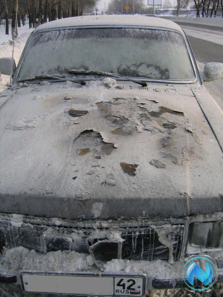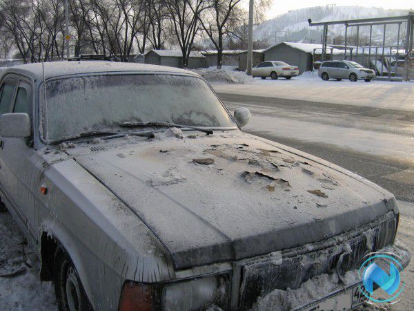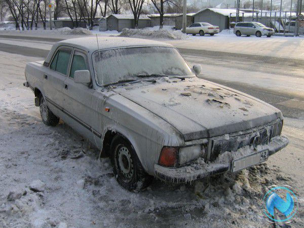 В результате воздействия высокой температуры на капоте ГАЗ 3102 выгорела и облупилась краска. О повреждениях, которые огонь нанес двигателю и агрегатам в подкапотном пространстве, судить невозможно, так как крышка капота намертво примерзла к кузову – пожарные не пожалели воды при тушении возгорания.