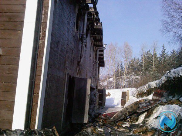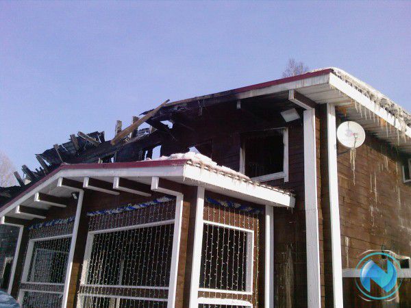 Огонь быстро охватил здание, сложенное из бруса. К моменту прибытия пожарных пламя вовсю полыхало внутри помещения. Несколько пожарных расчётов боролись с огнём, последняя машина уехала с места происшествия только в 13 часов. Однако спасти здание не удалось - от него остался лишь остов из обгоревшего бруса.