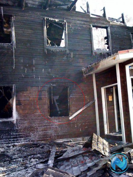 По словам пожарных, эпицентр возгорания находился на первом этаже рядом со входом. По предварительной версии именно через это окно (см. последнее фото) был совершен поджог.