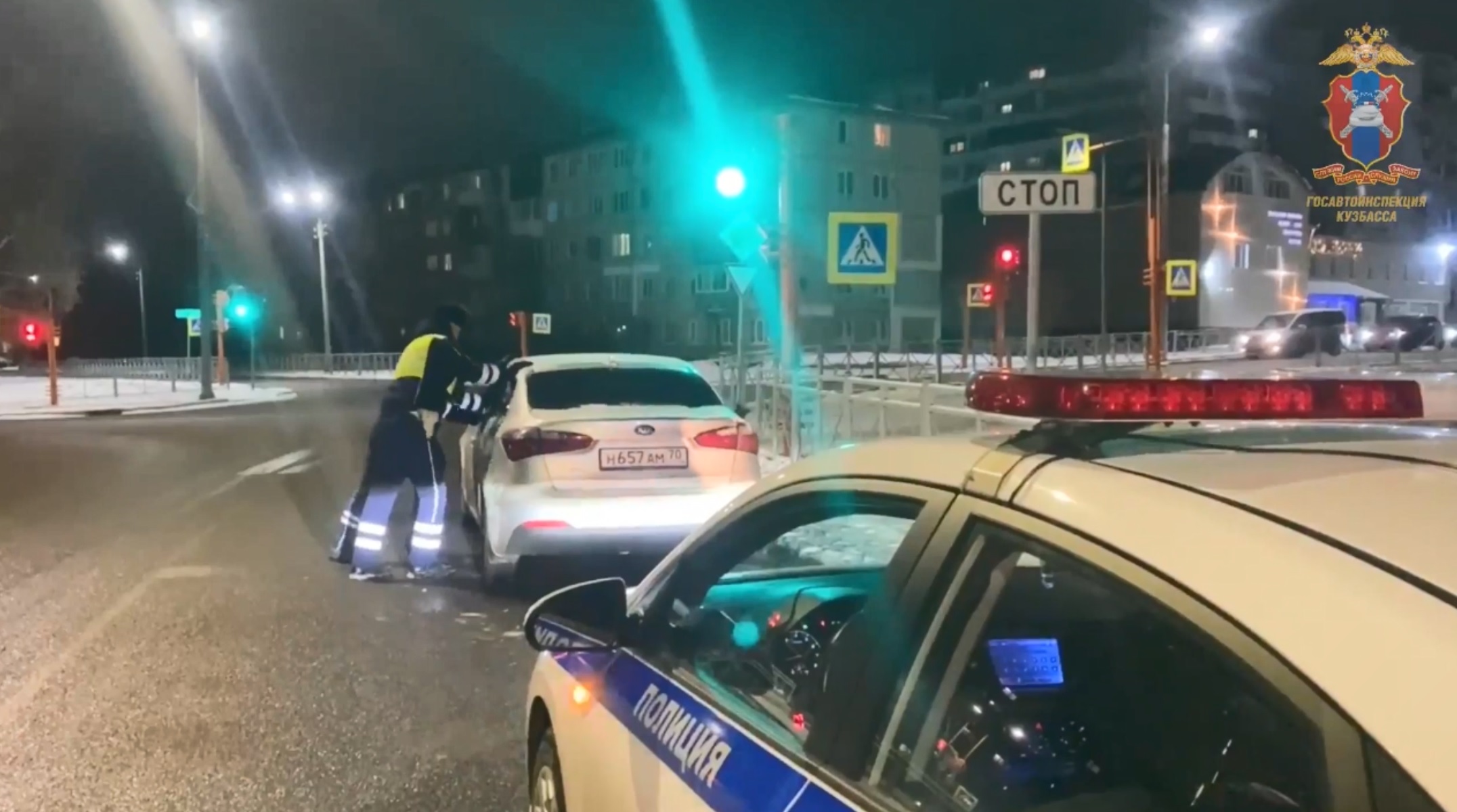 Накануне инспекторы ДПС города Кемерово обратили внимание на автомобиль «Киа Церато», водитель которого остановился перед светофором и пропустил несколько разрешающих движение фаз. Полицейские, поравнявшись с автомобилем, увидели, что водитель спит, «обняв руль».