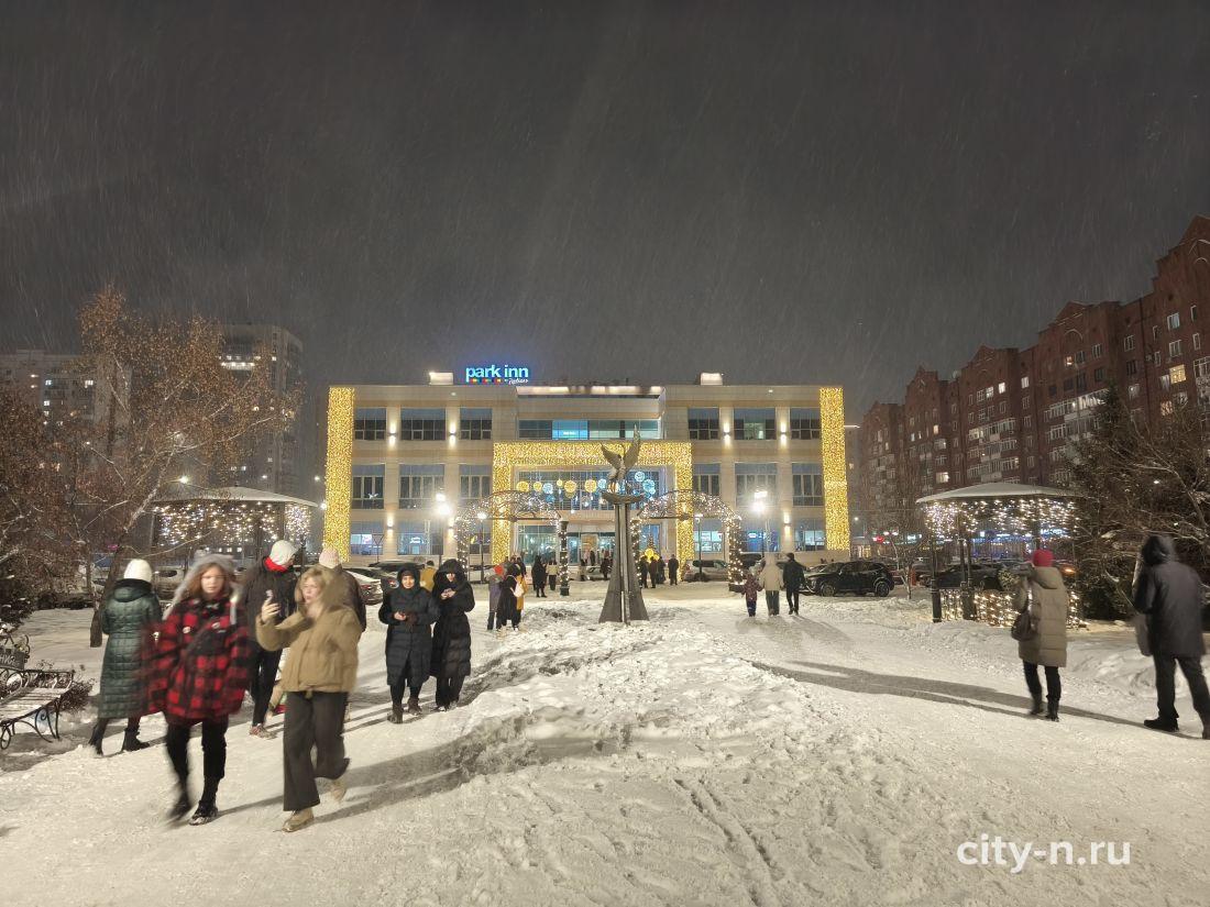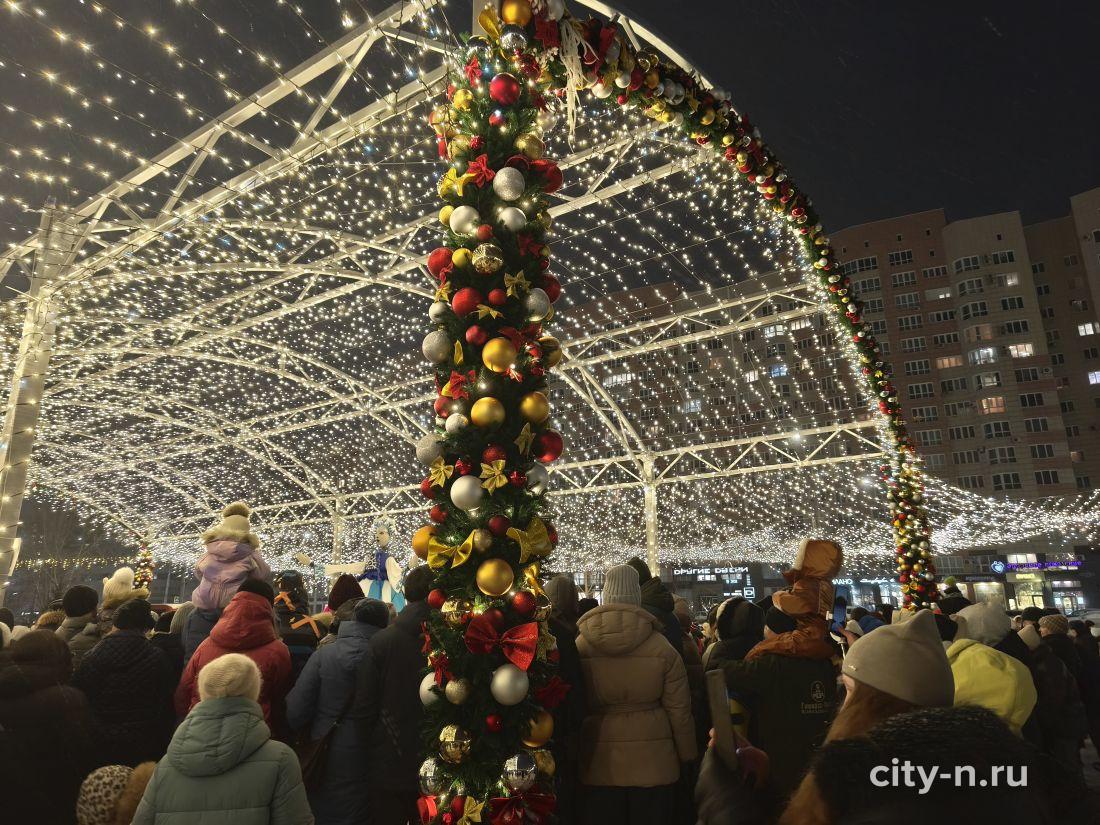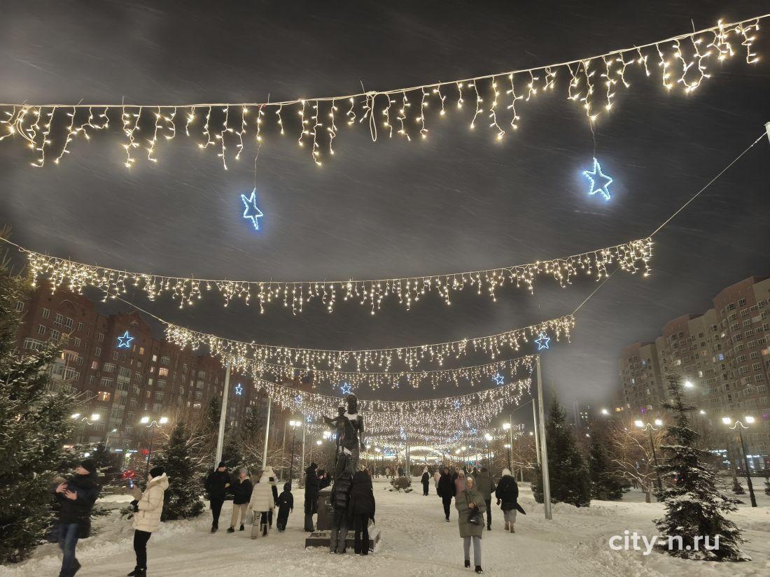 Над площадью торжественно повесили купол из лампочек, шарики и мишуру. То, что в других странах называют словом декабрь.