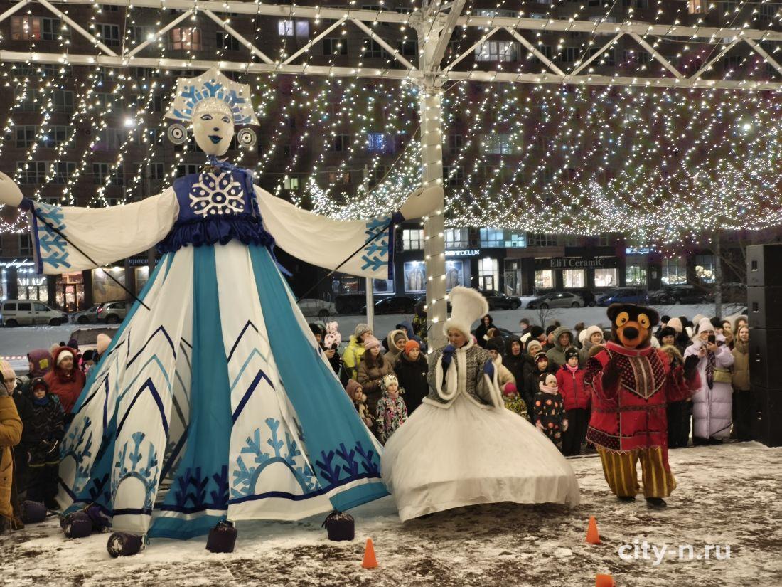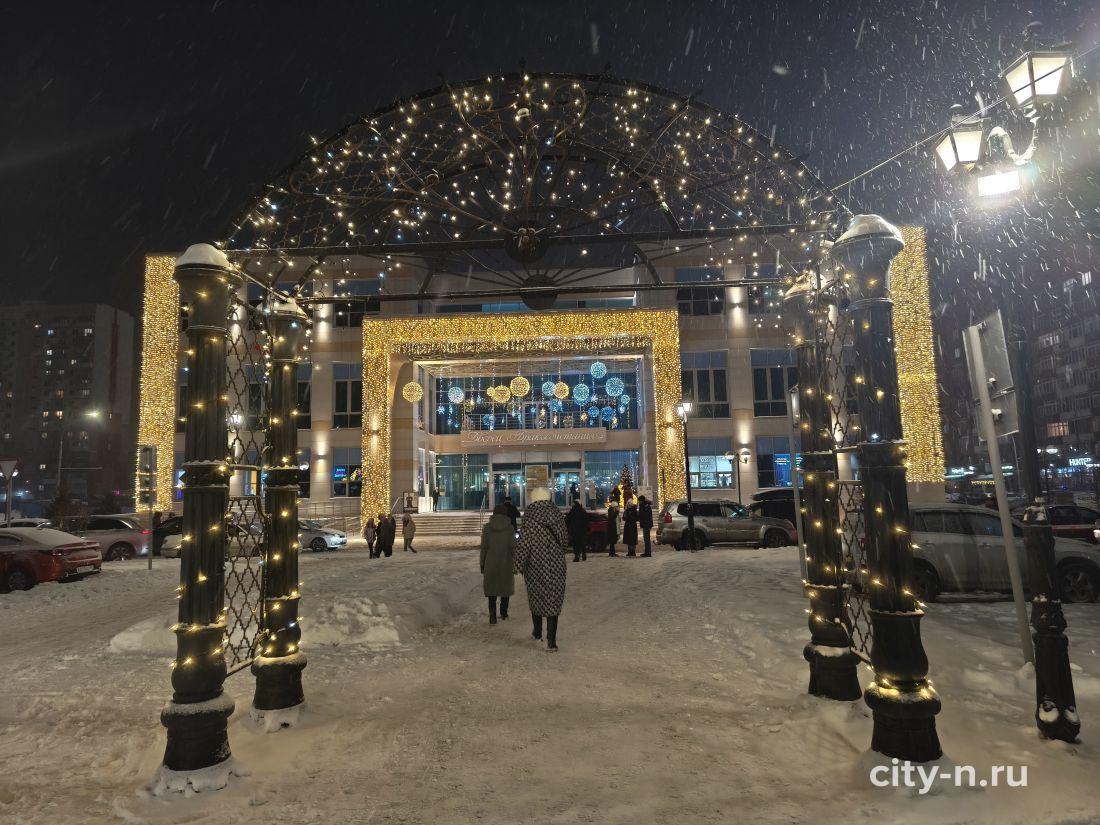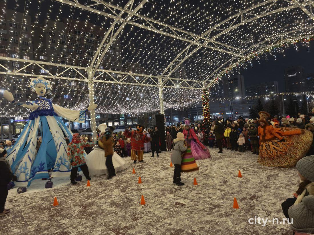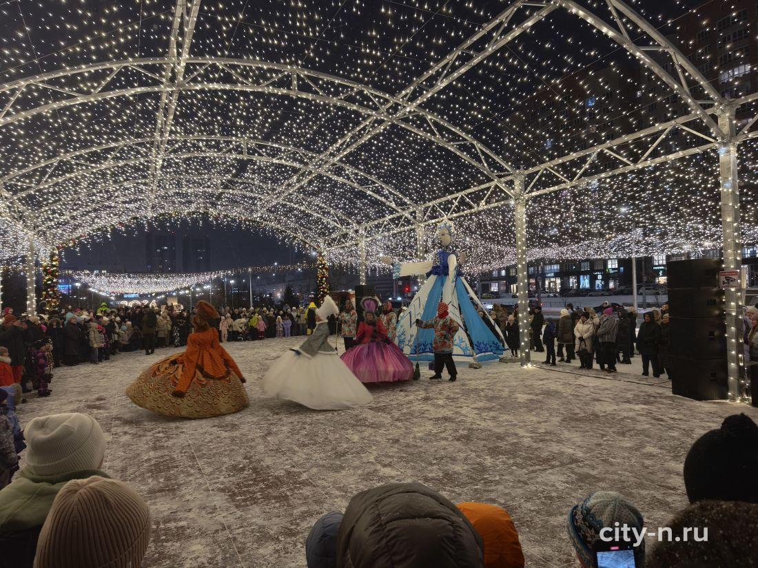 Над площадью торжественно повесили купол из лампочек, шарики и мишуру. То, что в других странах называют словом декабрь.