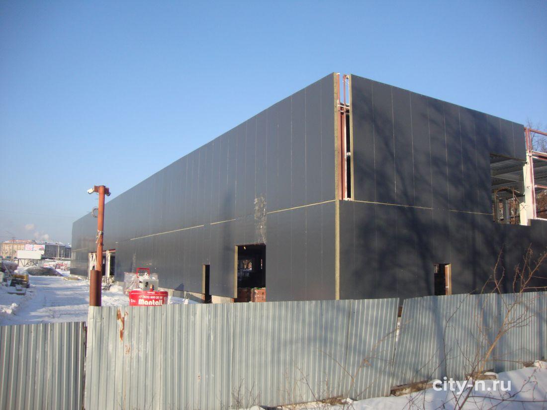 Ближе к Новому году строительство немного продвинулось: скелет здания начали обшивать чёрными листами, и теперь оно чем-то напоминает огромную банку из-под шпрот, чернеющую на видном месте в центре города.