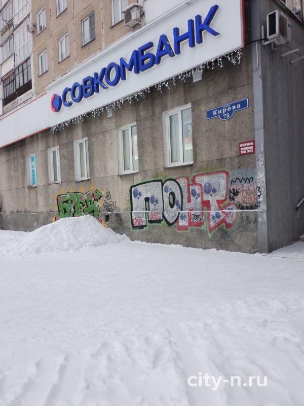 «На улице Кирова, 75 (магазин «Орбита») несколько дней назад вандалы-диверсанты-вредители на видном месте испортили — расписали — центральную арку и фасад лицевой части дома, выходящей на центральную улицу города.