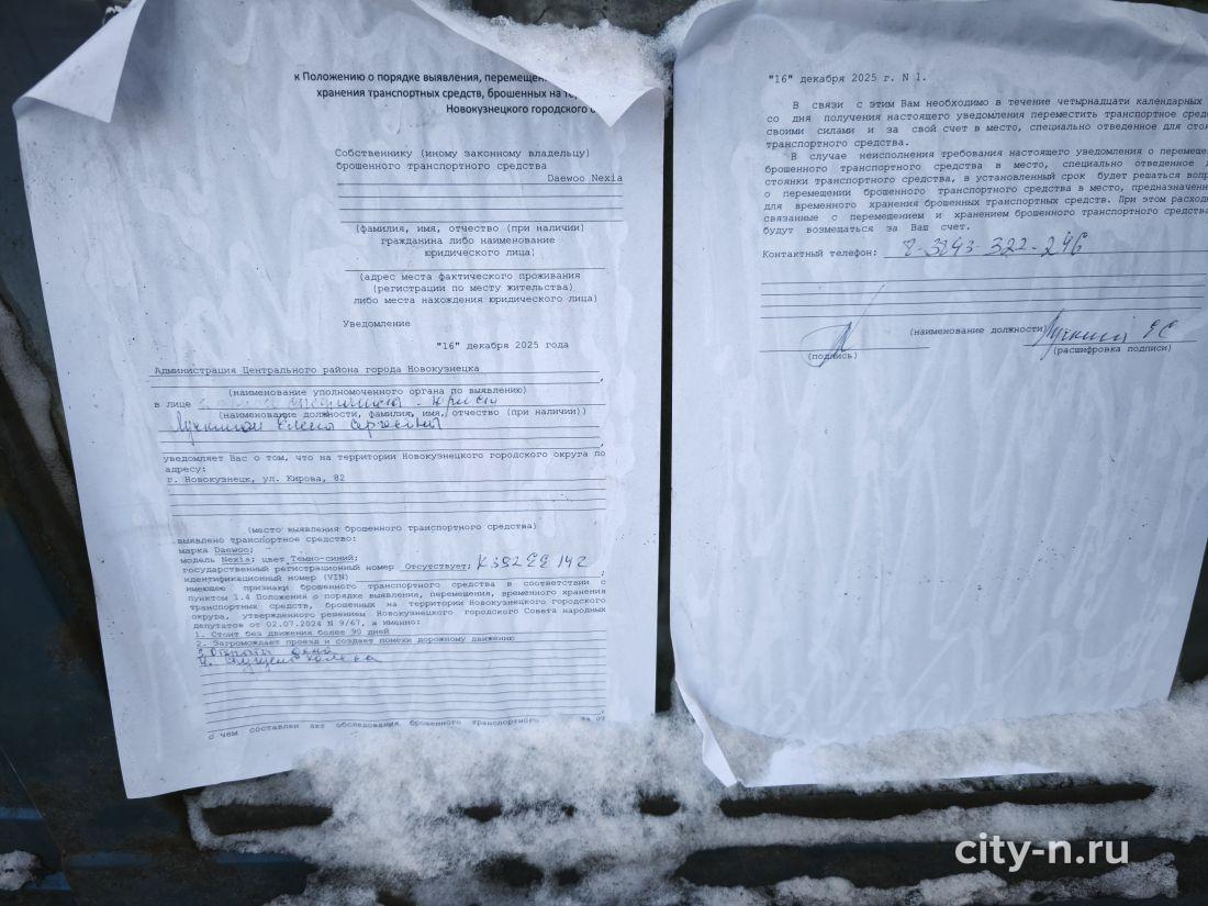 На транспортных средствах были размещены уведомления владельцу о необходимости в течение 14 календарных дней переместить автомобиль в специально отведённое для стоянки место. Также уведомления были размещены в электронном виде в сети Интернет — на официальном сайте администрации города в разделе «Горожанам-Транспорт».