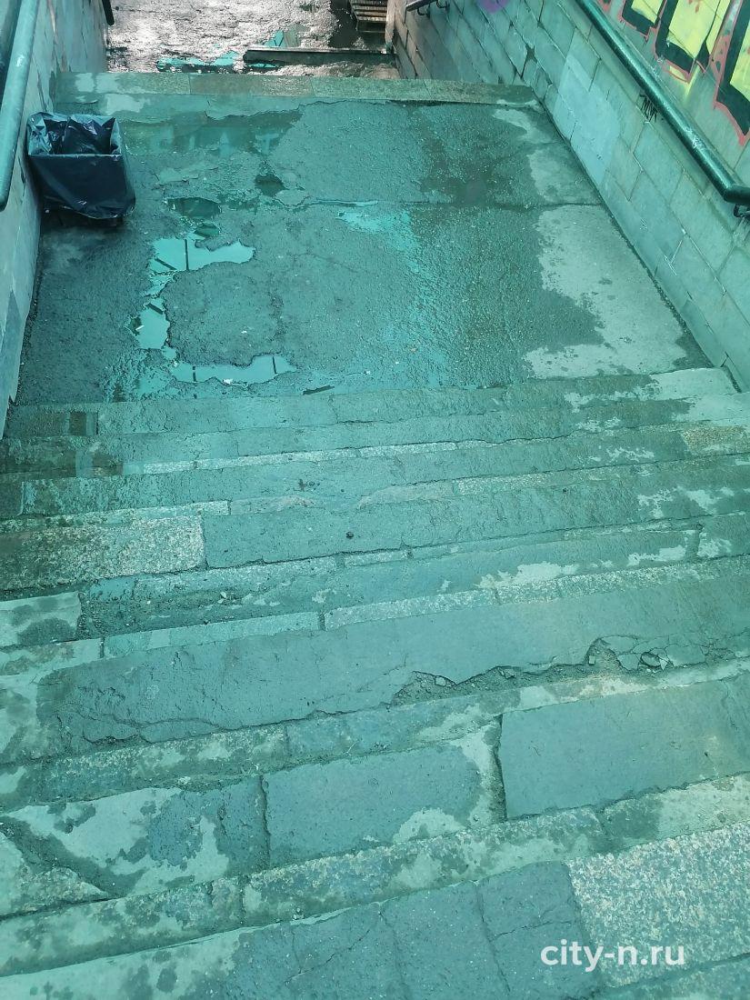 Напомним, в августе 2023 года два из четырёх входов в этот подземный переход (по одному на каждой стороне улицы) были перекрыты из-за аварийного состояния лестничных маршей. Как видно на свежих фотографиях, состояние лестниц, которые оставили для прохода, стремительно ухудшается.